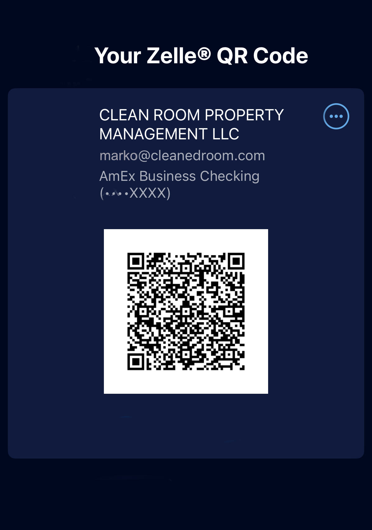 Zelle Name: Clean Room Property Management LLC